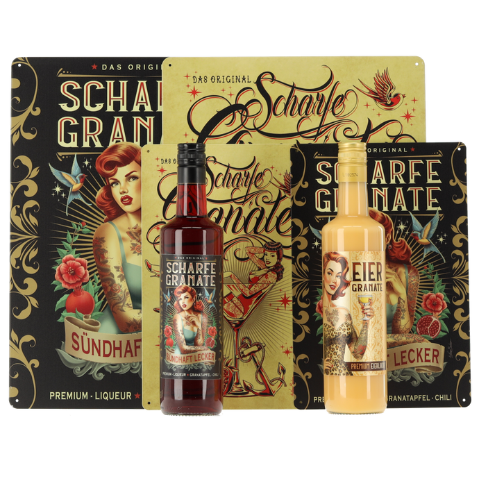 Scharfe Granate – Munitionskiste SG-18 | Geschenkset mit Likör & Extras