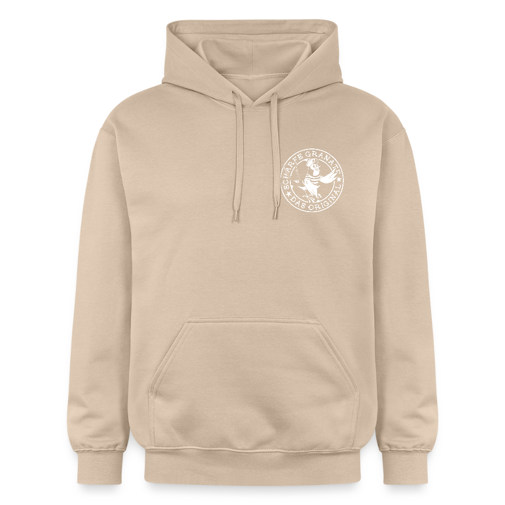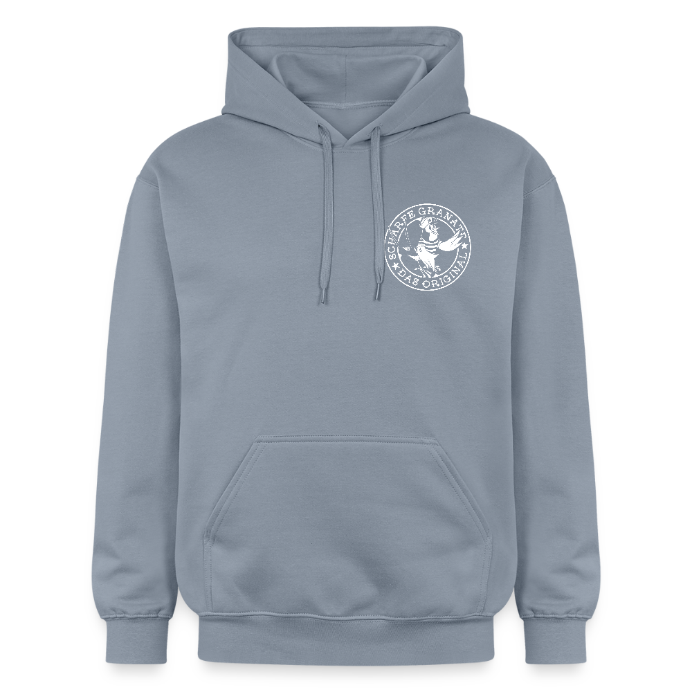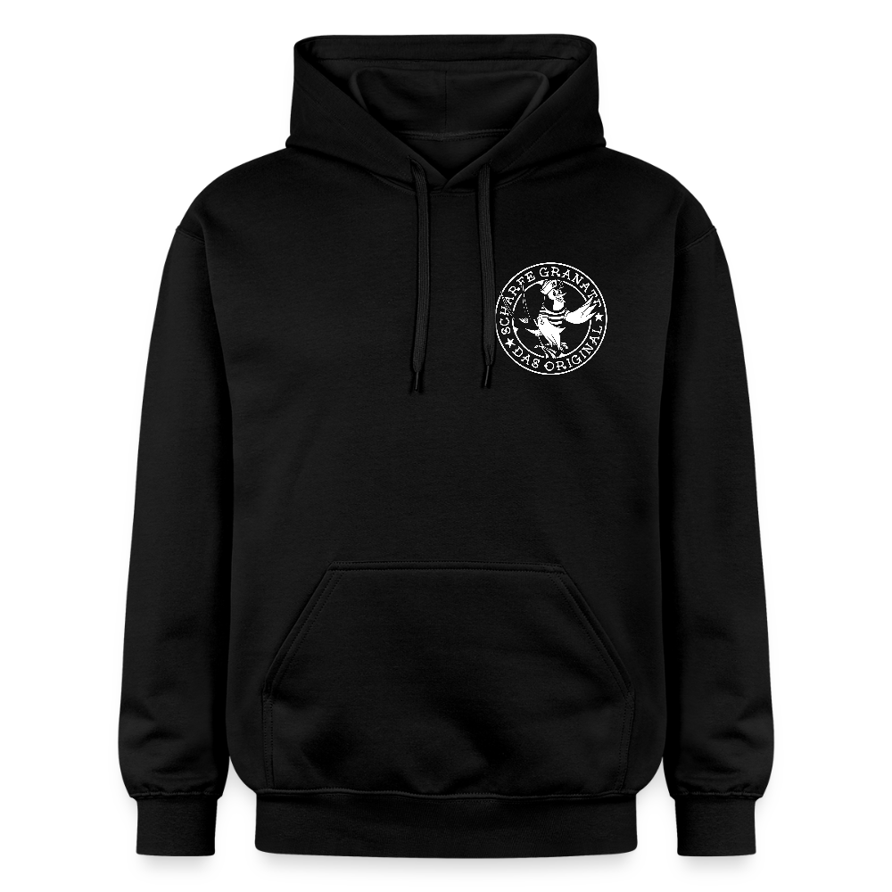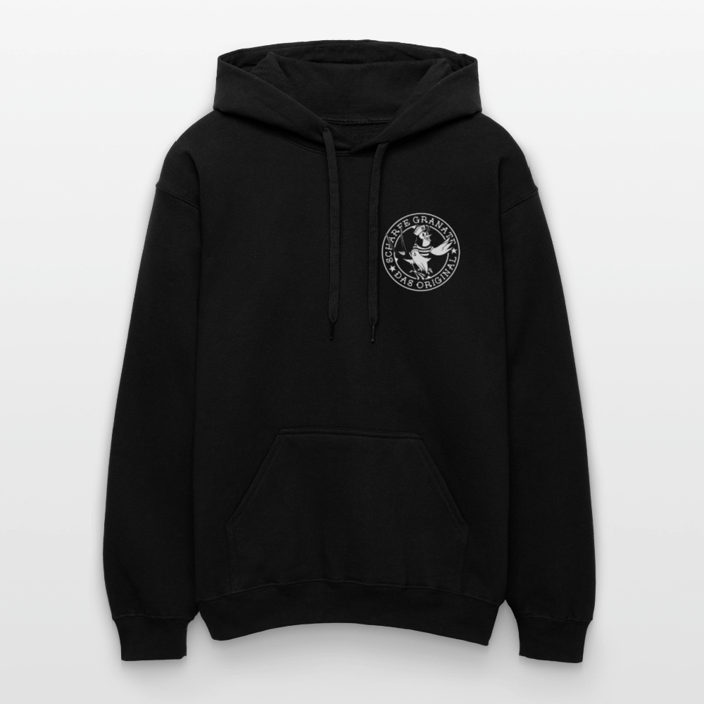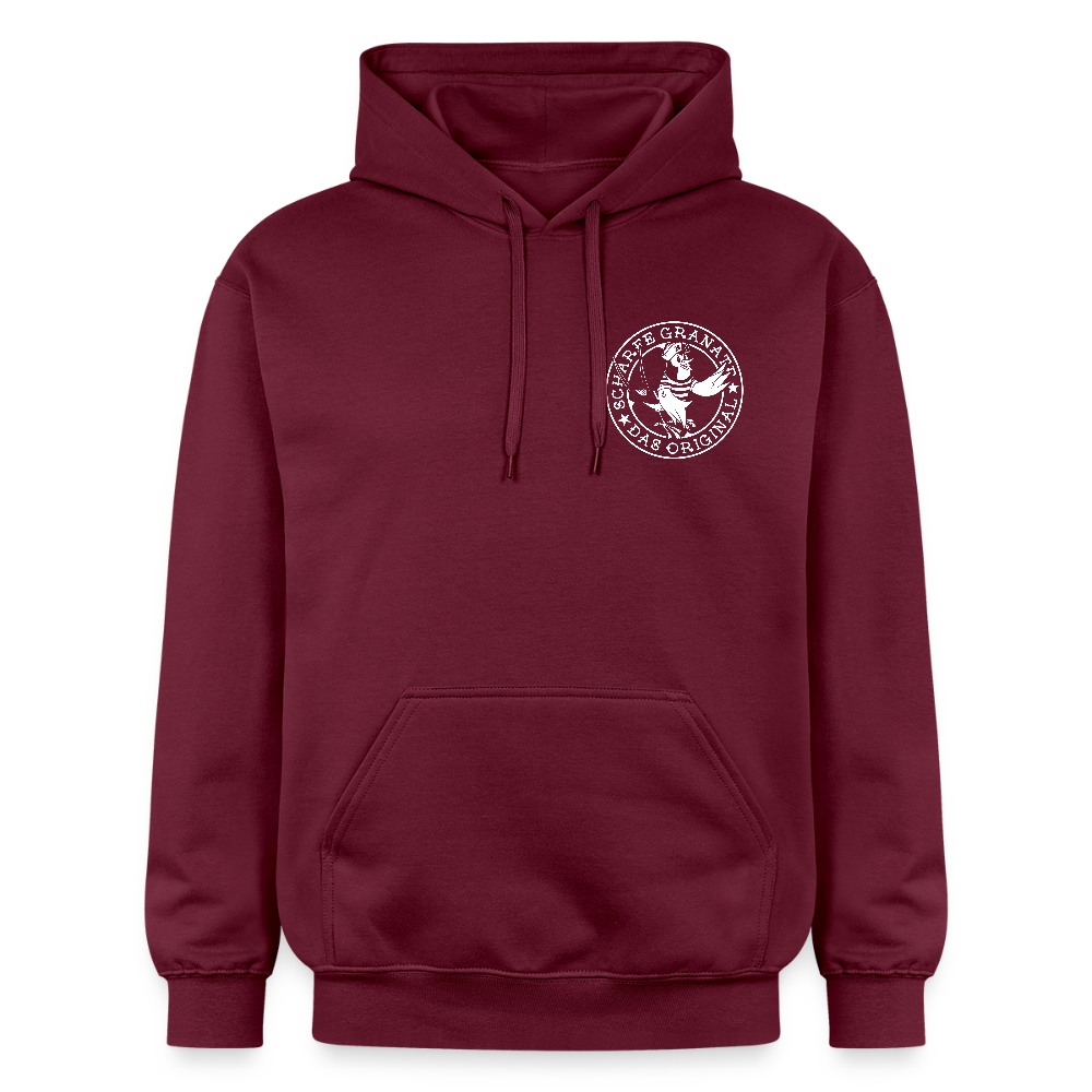 - Klassisch geschnittener Unisex Hoodie ohne Seitennähte mit abfallender Schulterpartie