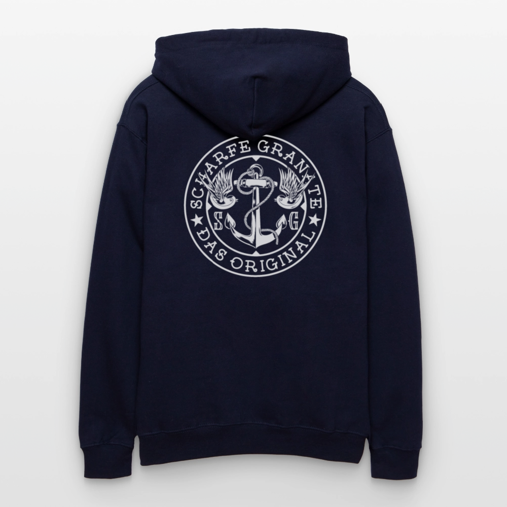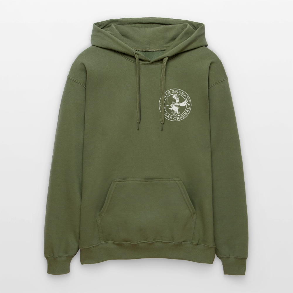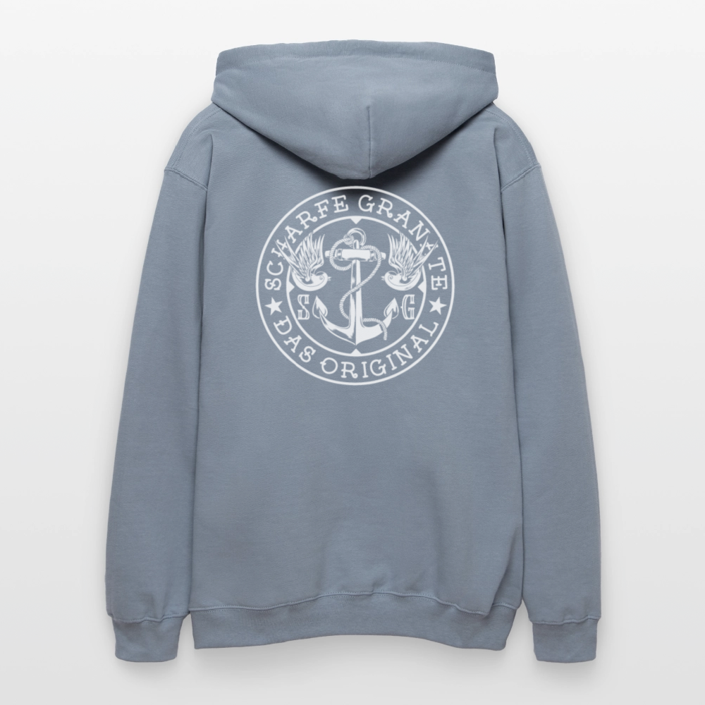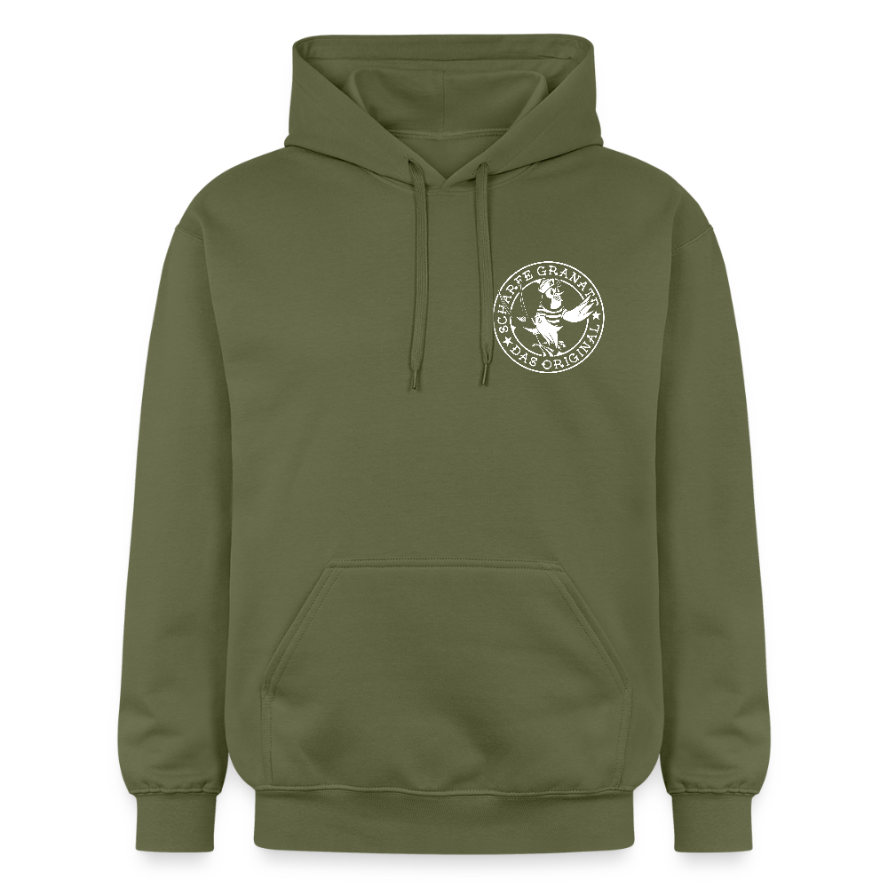 - Klassisch geschnittener Unisex Hoodie ohne Seitennähte mit abfallender Schulterpartie