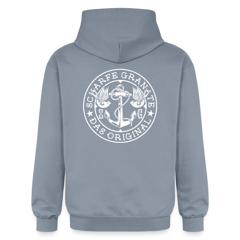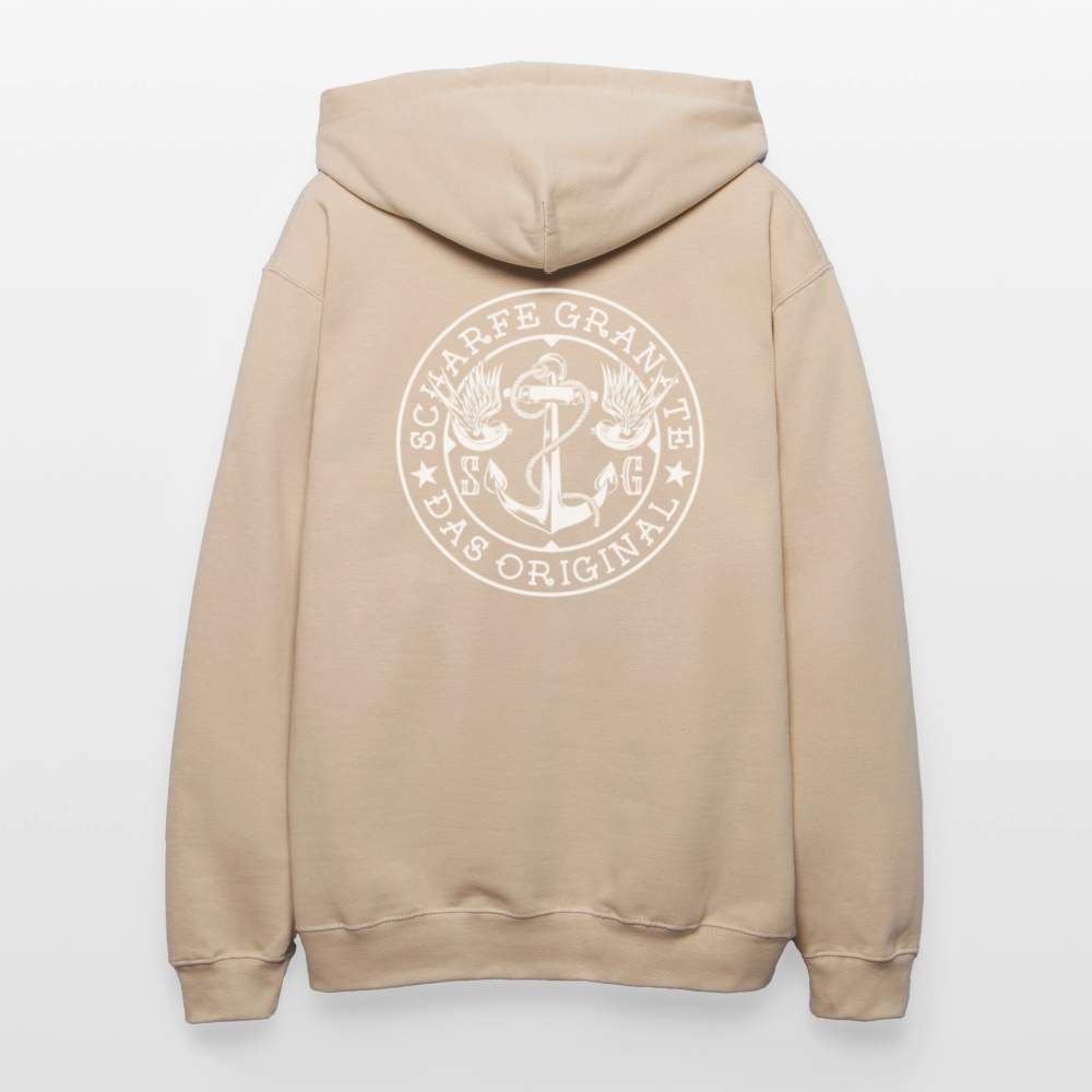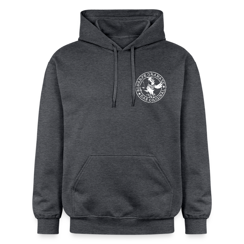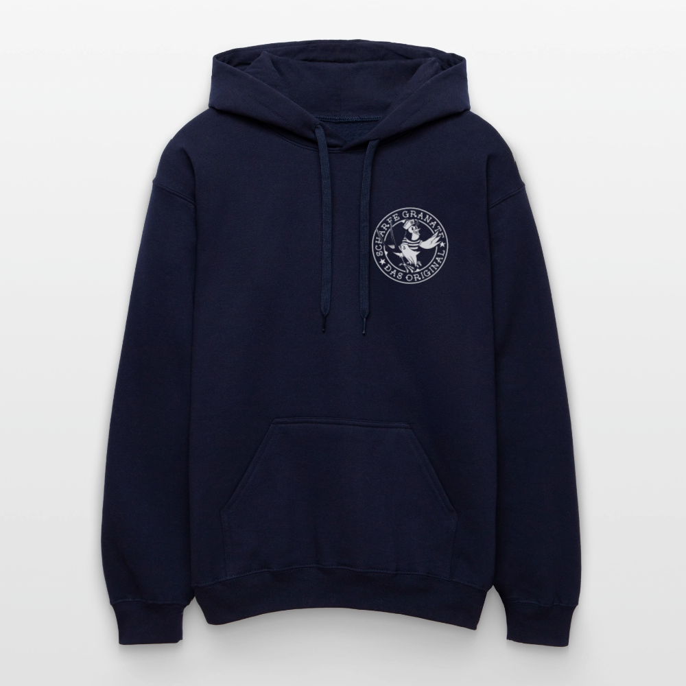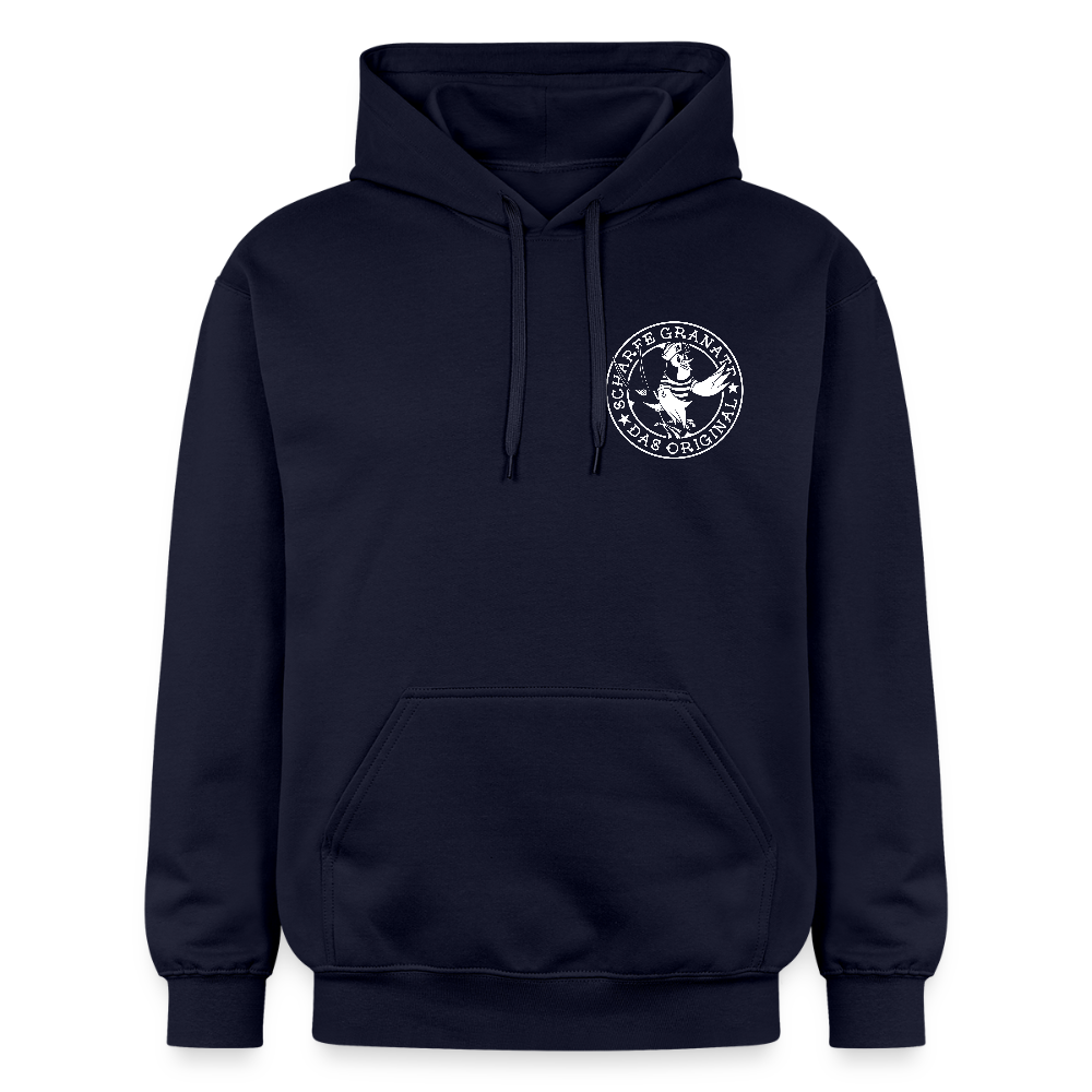 - Klassisch geschnittener Unisex Hoodie ohne Seitennähte mit abfallender Schulterpartie