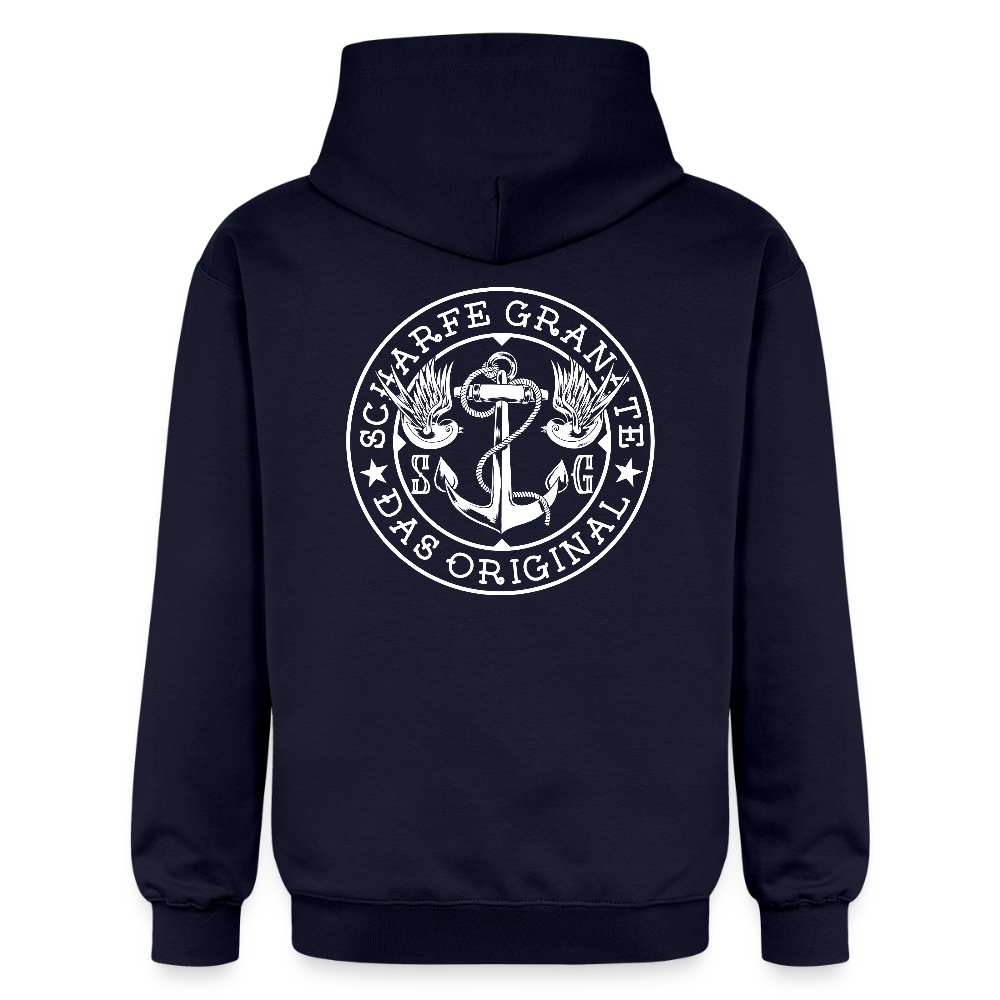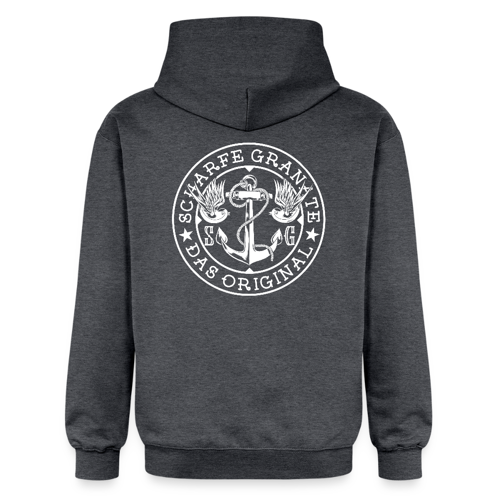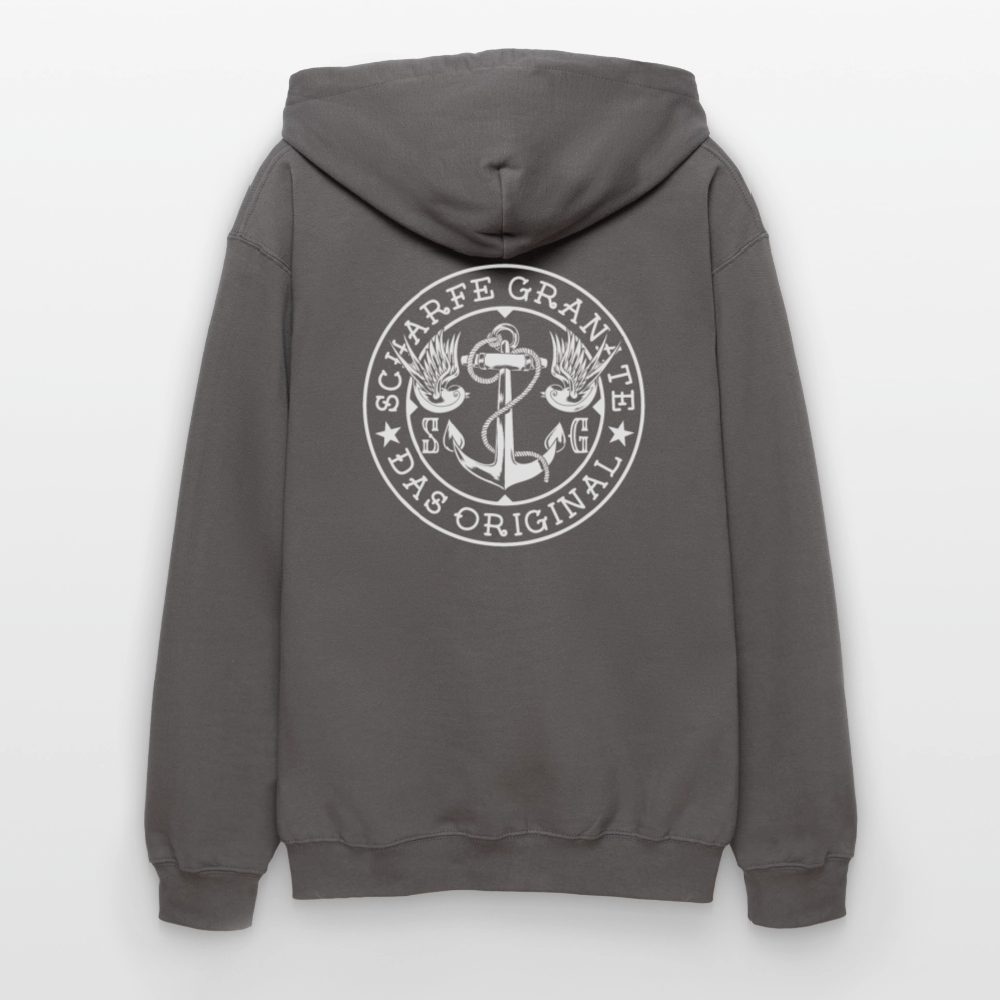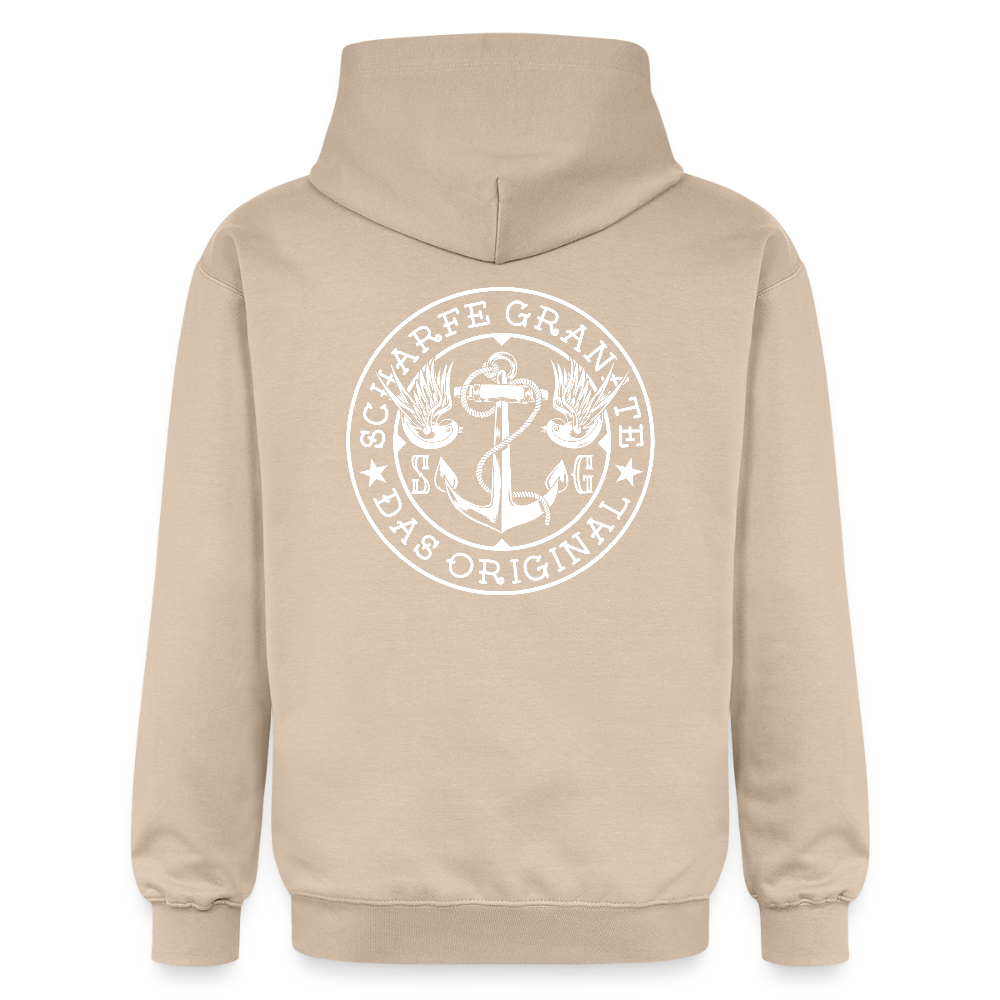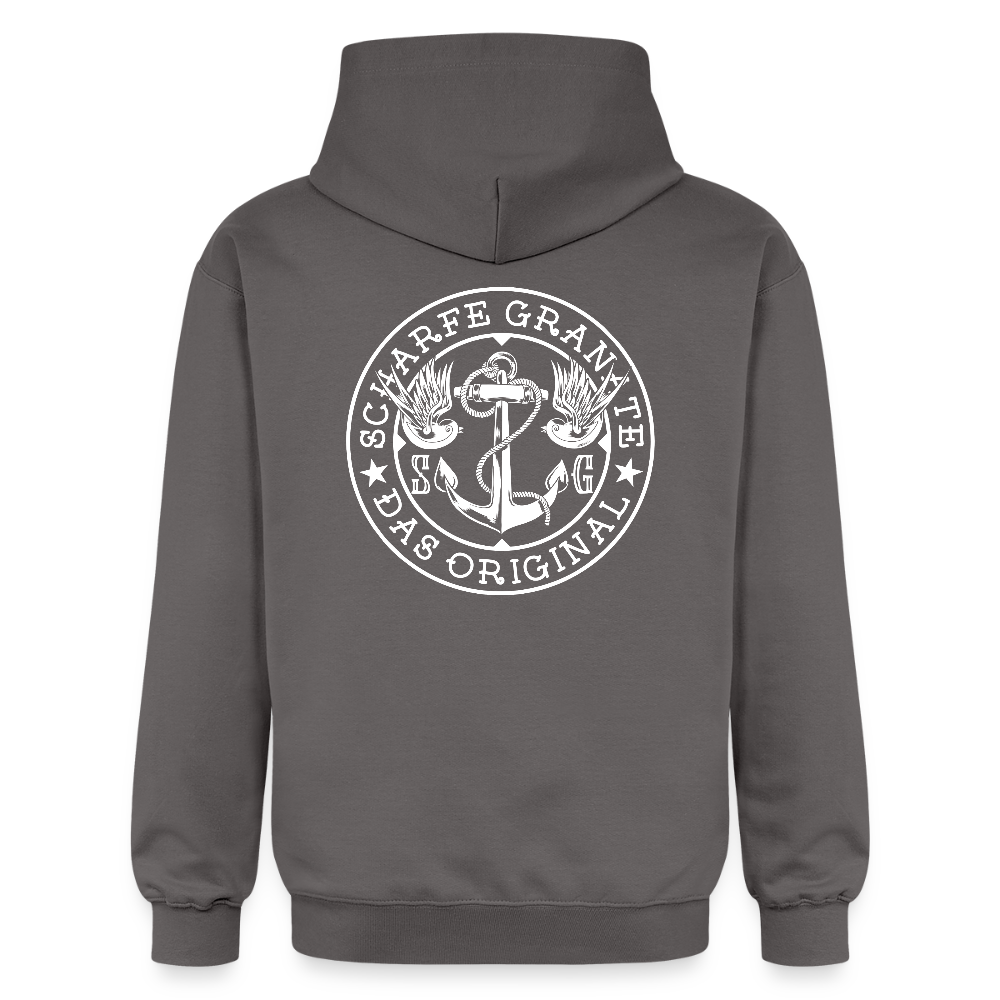 - Klassisch geschnittener Unisex Hoodie ohne Seitennähte mit abfallender Schulterpartie
